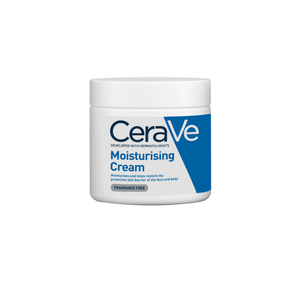 CeraVe Moisturising Cream is designed to hydrate and restore the skin's natural barrier with essential ceramides and hyaluronic acid. Ideal for dry to very dry skin on the face and body, it is developed with dermatologists and features MVE Delivery Technology for continuous hydration. This rich, non-greasy, fast-absorbing cream is fragrance-free and helps improve the skin’s appearance and feel.