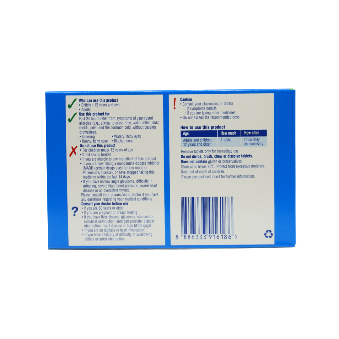 Take this medication exactly as directed by your doctor/pharmacist or according to the instructions on the label. Do not take more or less than instructed. You may take it with or without food. You may stop taking this medicine once you feel better or if there are no more allergies.