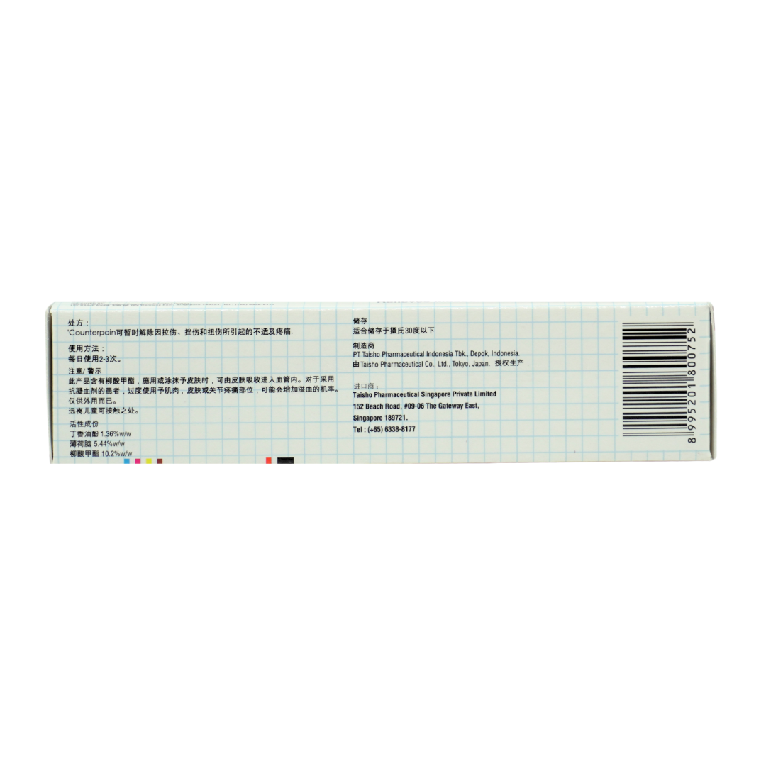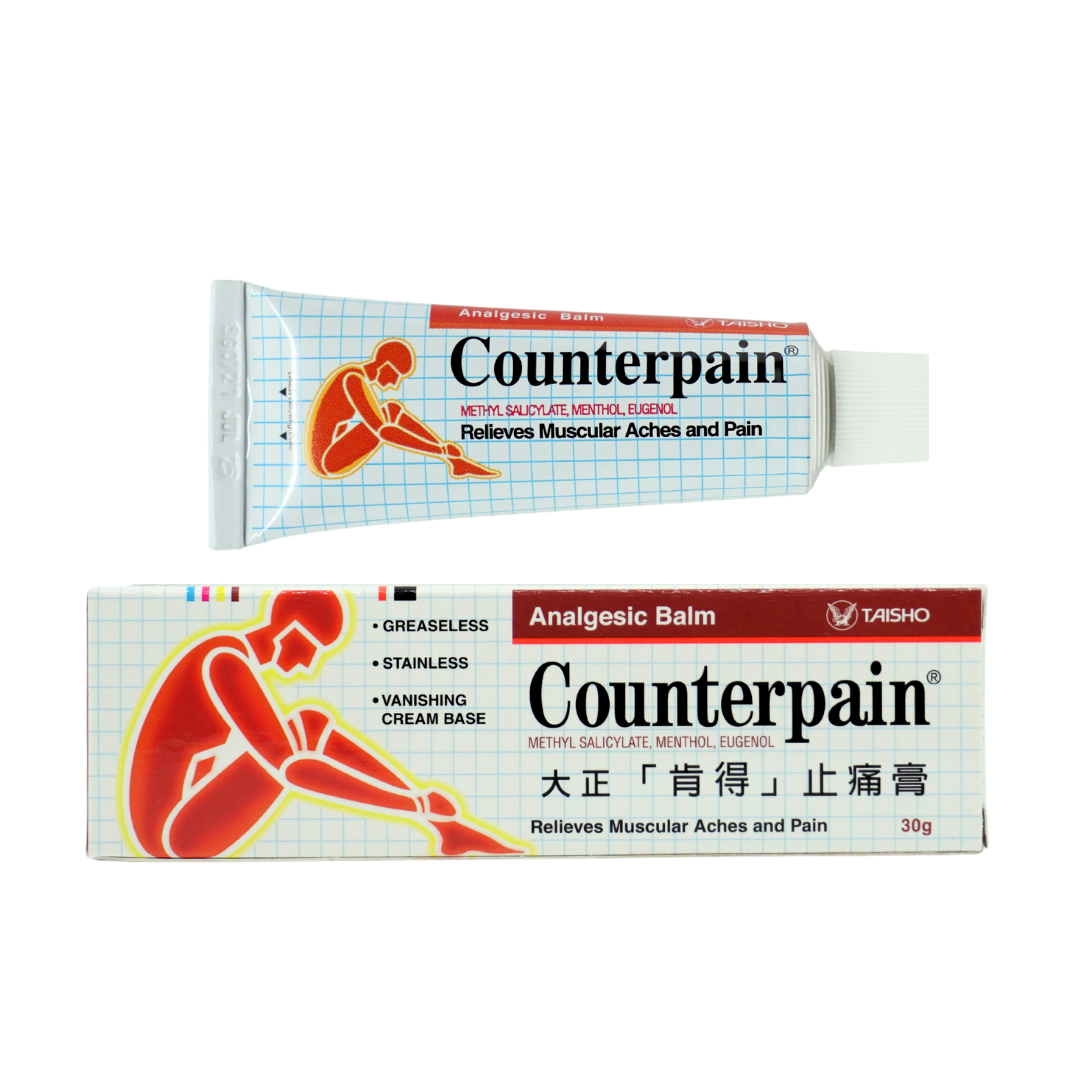 Counterpain® Analgesic Balm is a topical analgesic with a unique formulation to relieve muscular aches and pain associated with bruises, sprain and strains. The active ingredients create a deep heating sensation, providing relief to the joint and muscular pain. Counterpain® has been the trusted choice for generations of users across Asia.