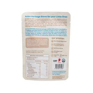 Introduce your baby to finely textured foods with this easy-to-prepare, nutrient-rich soup stew. Packed with essential vitamins A, B, and C, it offers a refreshingly sweet taste and easily mashable carrot bits for gentle gum exploration. The stew is easy and convenient to prepare, requiring only hot water to warm the pouch, making it travel-friendly as well! Our stews are BPA free and are made up of 4-layer food grade Aluminium, our stews go through a high temperature retort process to ensure that there are no bacteria left in the pouches that will cause contamination.