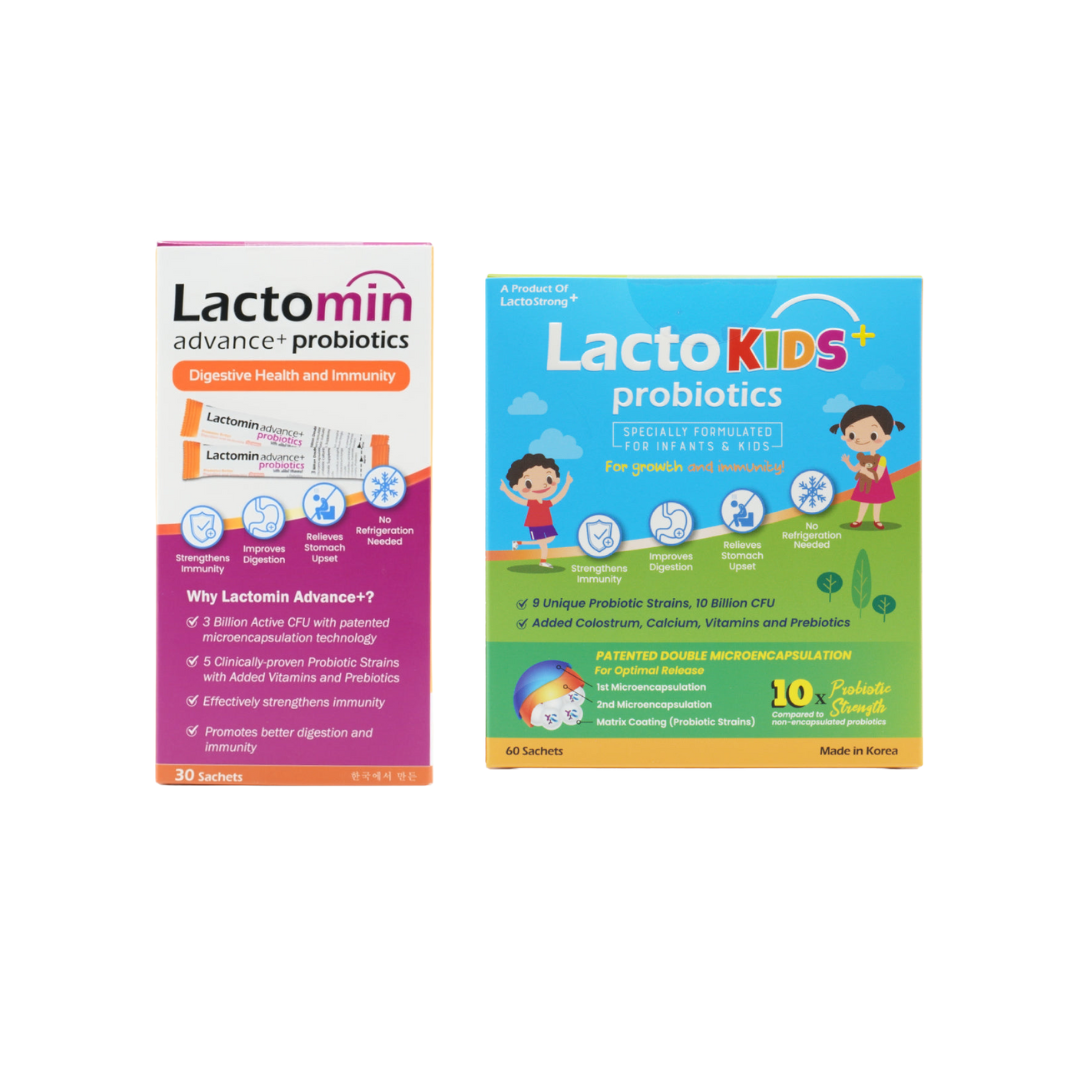 Lactokids and Lactomin Probiotics Bundle is tailored for both children and adults to help maintain digestive balance and overall gut health of the whole family.