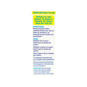 Flo Kids Saline can be used at any angle, making it quick & easy to clear your child's nose. Flo Kids Saline is ideal for kids. The thumb drive pump is easy to use - some children can even do it themselves! Always make sure it is under parental supervision. Children who are involved in their own treatment are often happier and more co-operative, making them easier to treat.