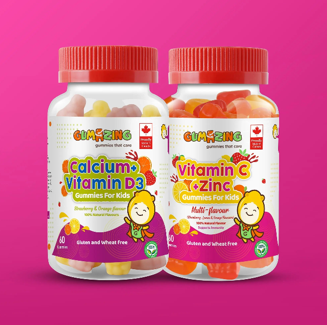 Gumazing Kids Daily Gummy Vitamin Bundle: Calcium + Vitamin D3, Vitamin C + Zinc, 60's Each