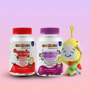 combining the power of multivitamins, probiotics, and elderberry in tasty gummy form. The multivitamins help support healthy growth, immunity, and overall wellness, while probiotics promote good digestion and gut balance. Elderberry, rich in antioxidants, provides an extra layer of immune support to help kids stay strong and resilient year-round.