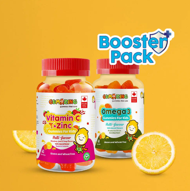 Gumazing Kids Daily Gummy Vitamin Bundle: Vitamin C + Zinc, Omega 3 Fish Oil, 60's Each