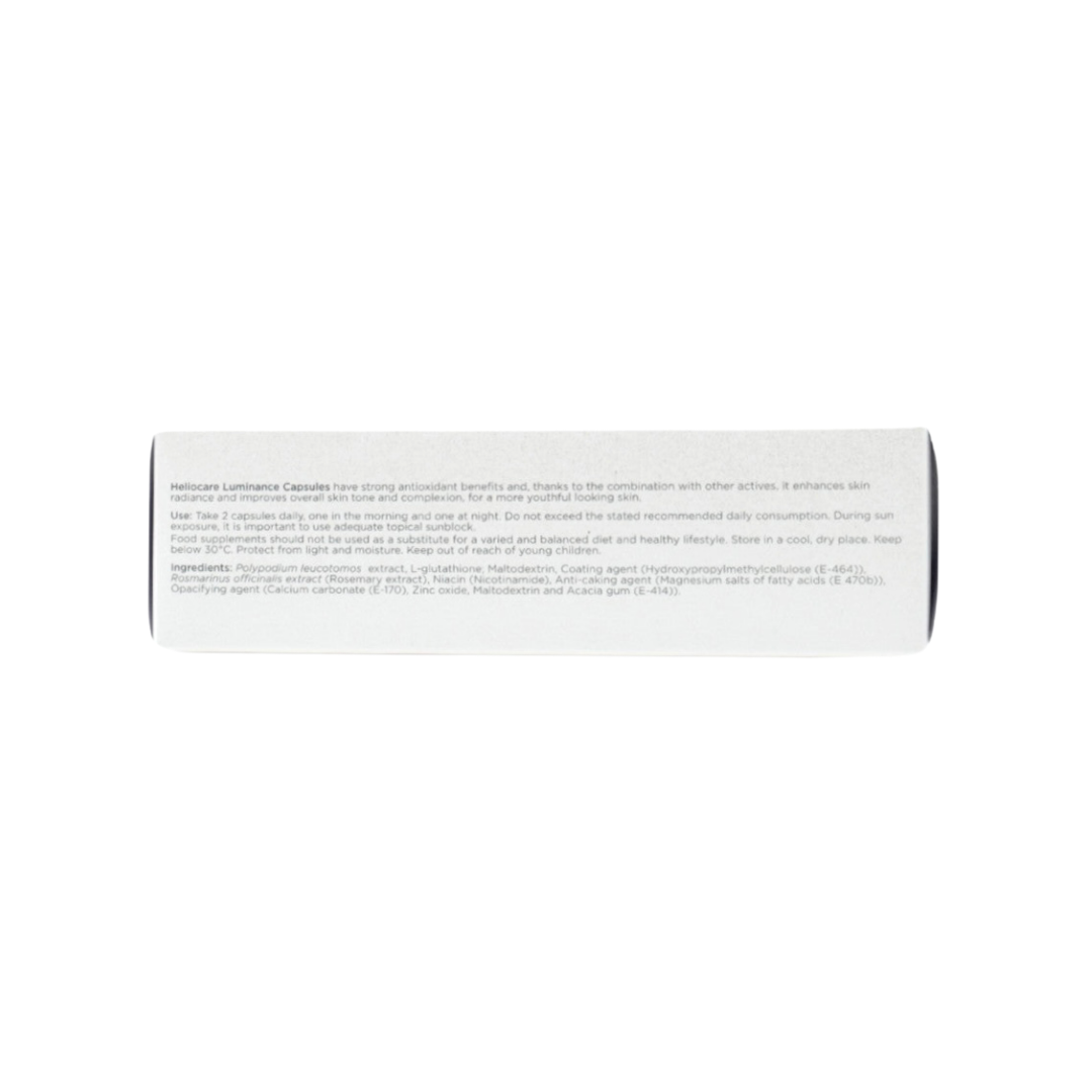 Formulated with Fernblock®, Heliocare Luminance is an oral supplement with excellent DNA repair and antioxidant properties that is able to reduce free radical, preventing the formation of hyperpigmentation caused by external aggressors such as UV rays, digital devices, visible light and pollution. A powerful combination of ingredients like Glutathione, Rosemary Extract and Nicotinamde create a synergistic effect that works wonders for the skin – fade discoloration, improving the appearance of fine lines and wrinkles, radiant complexion and healthier looking skin.