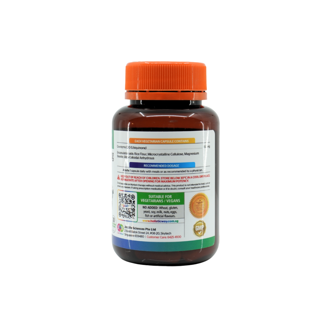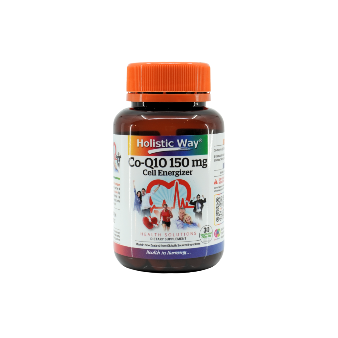 Each capsule contains 150mg Co-enyzme Q10 (Ubiquinone)