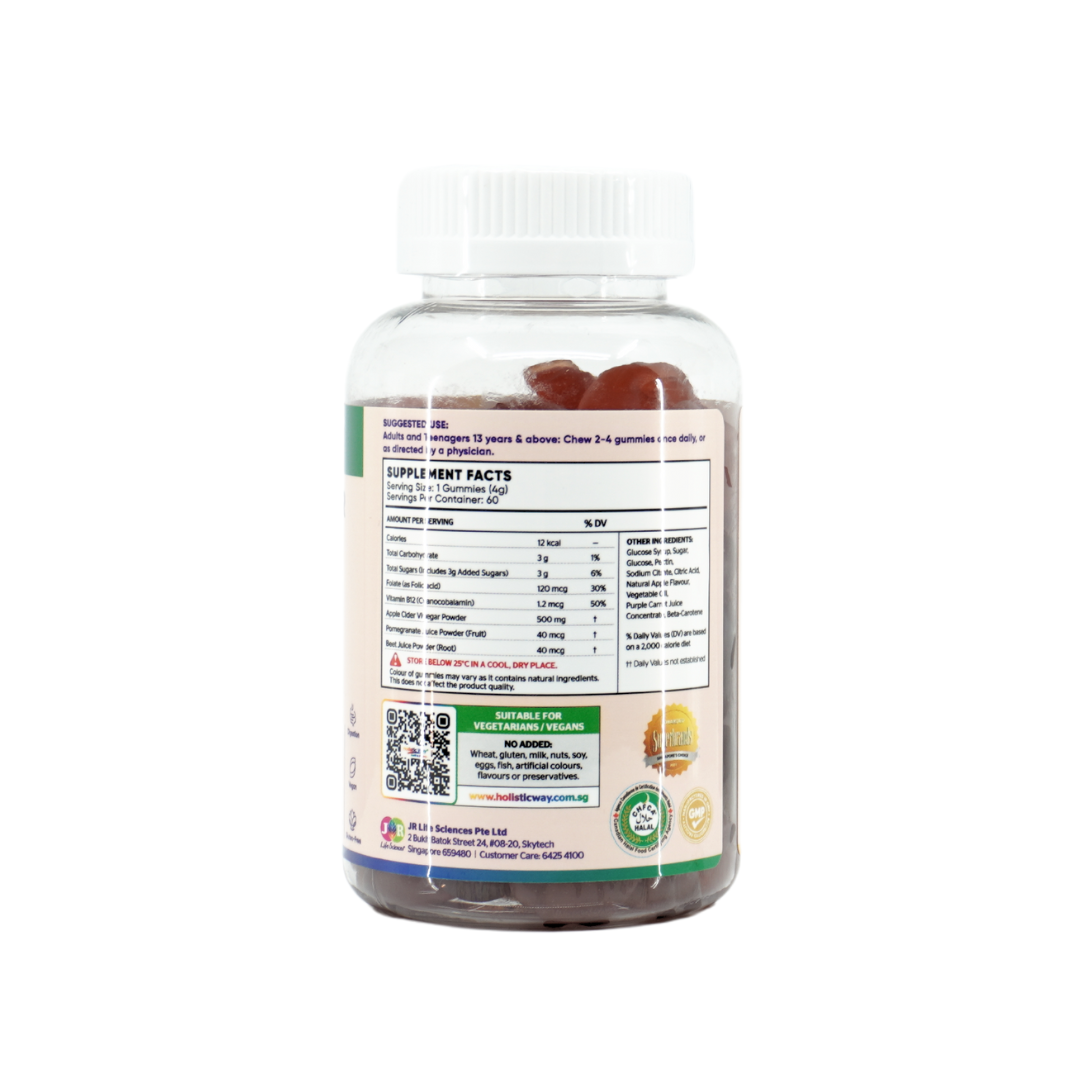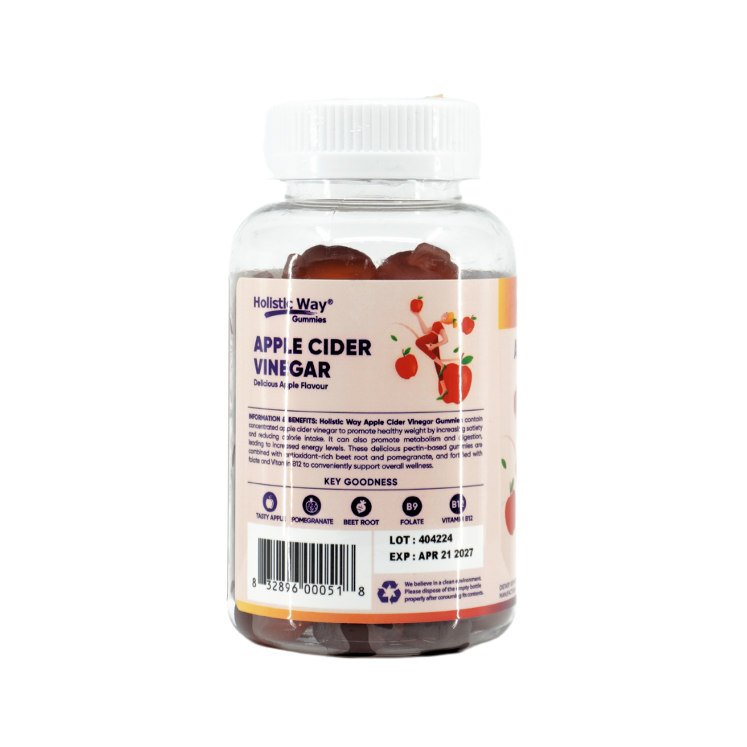 Holistic Way Apple Cider Vinegar Gummy is a dietary supplement that contains concentrated apple cider vinegar, beetroot, and pomegranate. This unique combination is designed to support healthy weight, metabolism, and digestion.