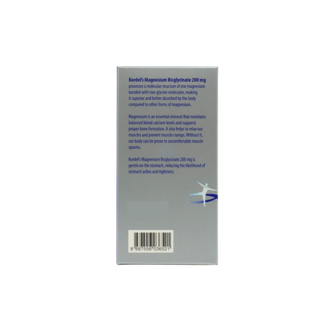 Kordel’s Magnesium Bisglycinate 200 mg possesses a molecular structure of one magnesium bonded with two glycine molecules, making it easily absorbed by the body.