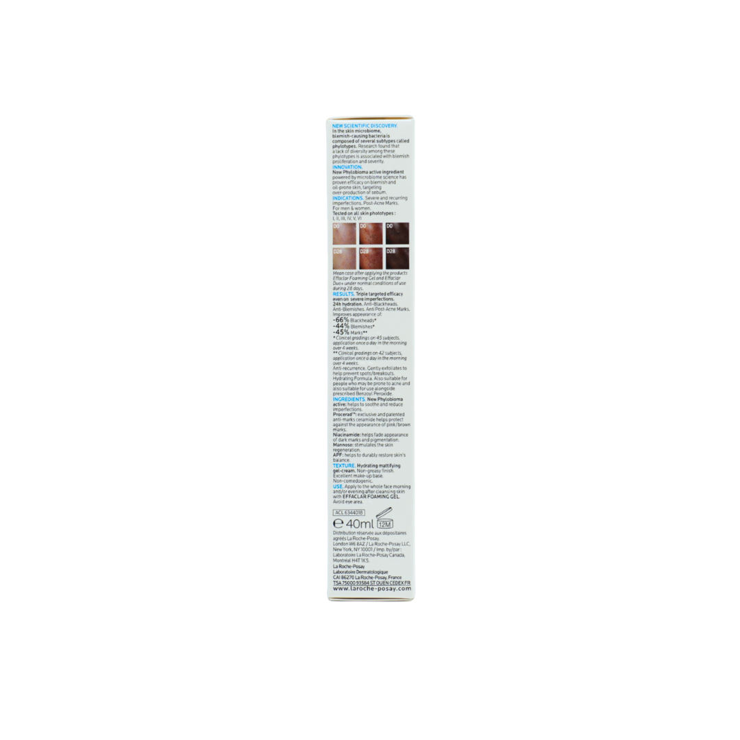 Effaclar Duo+M is a moisturizer for acne-prone skin with reinforced anti-imperfection efficacy, its improved formula helps rapidly clear existing spots and blackheads, prevents their reappearance, and limits the risk of post-acne marks. Effaclar Duo+M is clinically proven visible result in just 8 hours*. Specifically formulated for oily acne-prone skin, adults and teenagers from 10 years old.