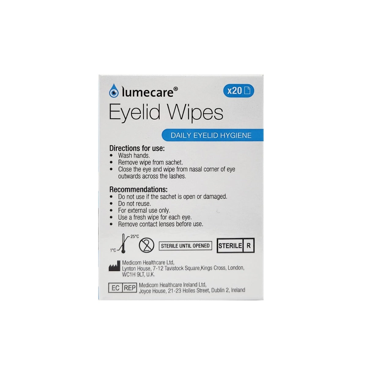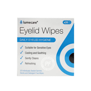 Gently clean away dirt build up around your eyelids and eyelashes with Lumecare Eyelid Wipes 20’s!