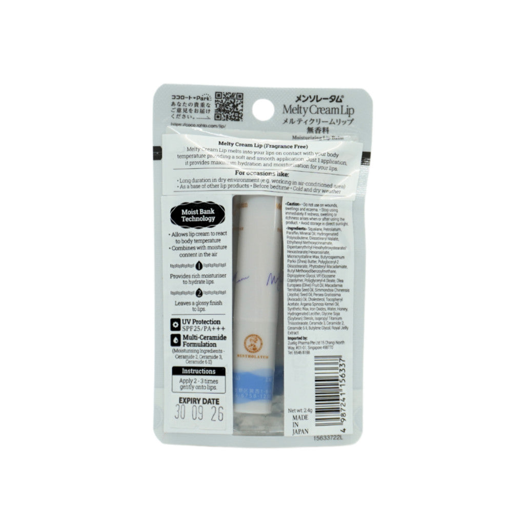 Melty Cream Lip melts into your lips on contact with your body temperature providing a soft and smooth application Just 1 application, it provides maximum hydration and moisturation for your lips.