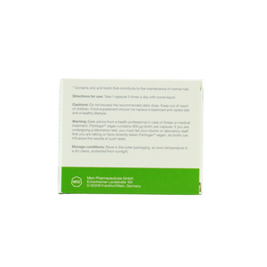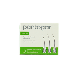 Pantogar® vegan is an oral agent that supports healthy and beautiful hair. It delivers a nutrient combination of B vitamins, cystine, folic acid and minerals to supply the hair roots and support natural hair growth.