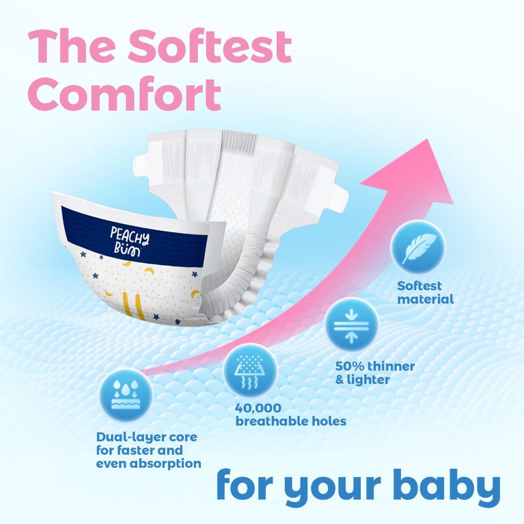 - Ultra-Thin & Super Absorbent: At just 1mm thin, our diapers pack a punch with 12 hours of leak protection.