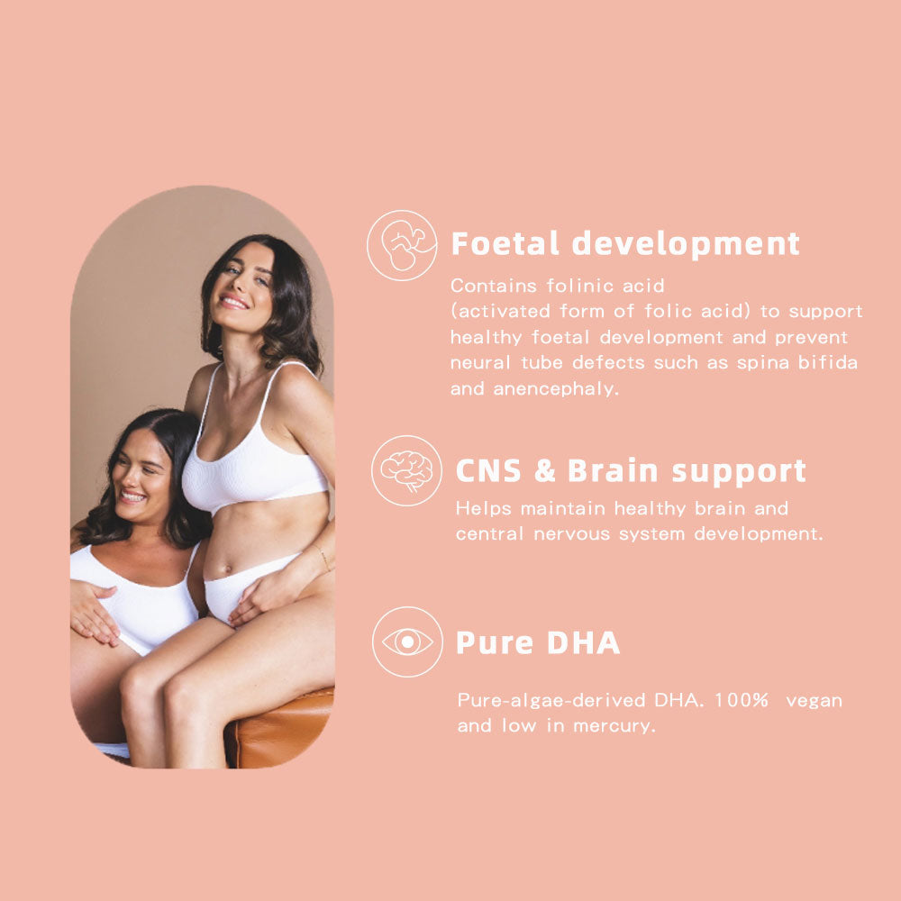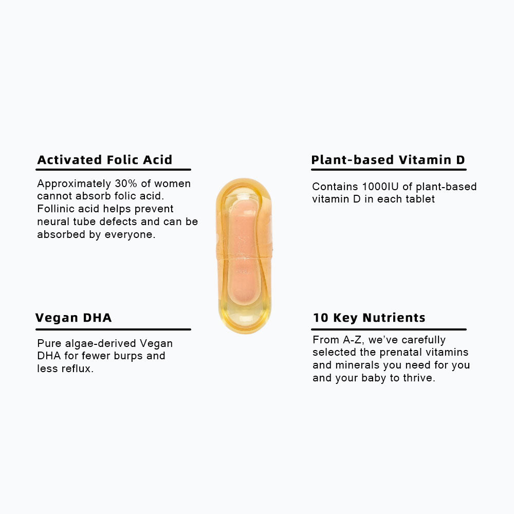 Nurture your prenatal health with 12 essential vitamins & minerals + DHA in our expertly crafted, patented Nutriseal-Caps™ technology for optimum absorption.