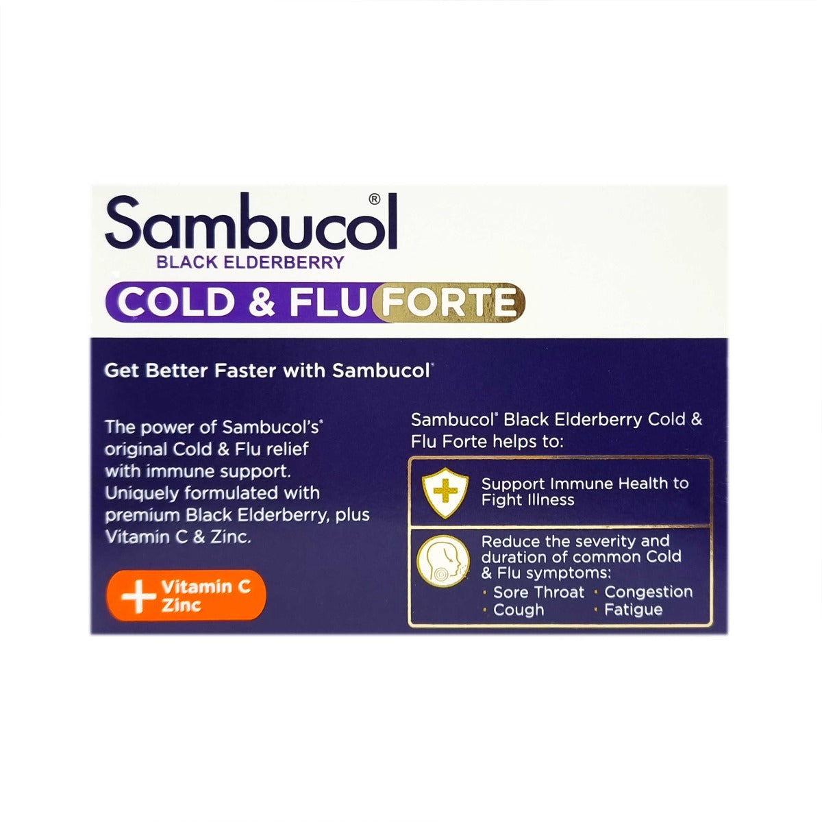 - Reduce the severity and duration of common Cold & Flu symptoms: Sore Throat, Congestion, Cough & Fatigue