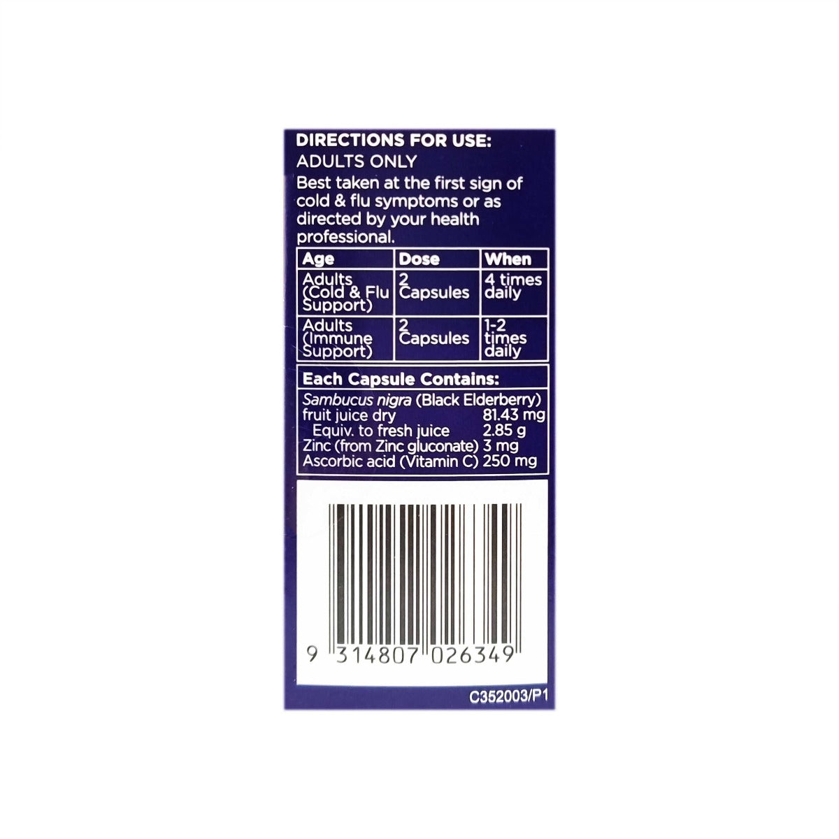 - Easy to swallow capsules containing black elderberry plus Vitamin C and Zinc