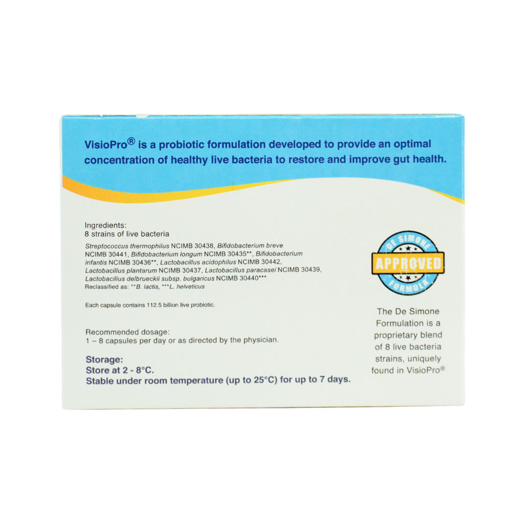 Each VisioPro dosage is bolstered with a number of VisioPro benefits, including a combination of 8 different strains of live lactic acid bacteria and bifidobacteria.
