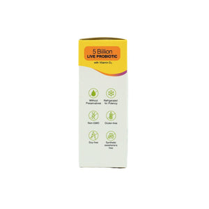 VisioPro Probiotics Drop does not contain gluten, soy, preservatives and synthetic sweeteners. It may contain traces of milk. 0.5 ml correspond to 5 billion live lactic acid bacteria and bifidobacteria & 400 IU Vitamin D