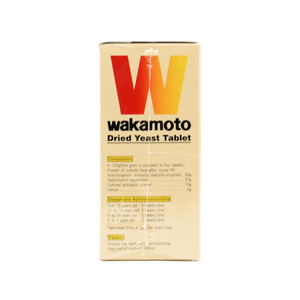 Wakamoto is a gastrointestinal drug containing yeast (vitamin supplement) as a base which is obtained by inoculating and cultivating powder of cultured Aspergillus oryzae NK (microorganism producing digestive enzymes) and cultured lactobacilli powder in nutrient-rich embryo buds of rice and wheat. Wakamoto is made from natural products mainly, and can be administered by a wide range of consumers, from children to elderly people.