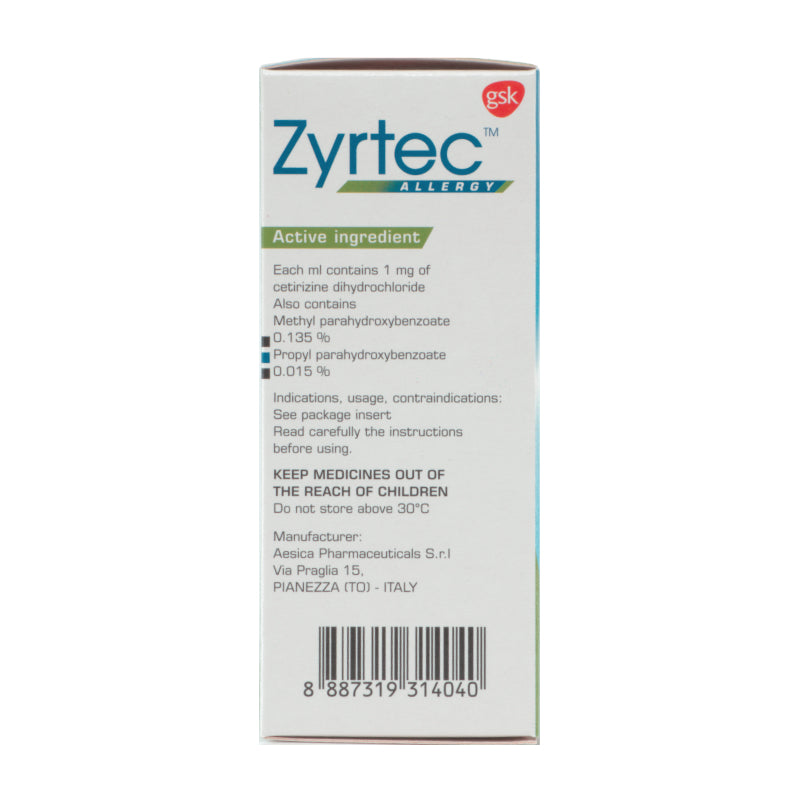Zyrtec Cetirizine 1mg/ml Solution 75ml