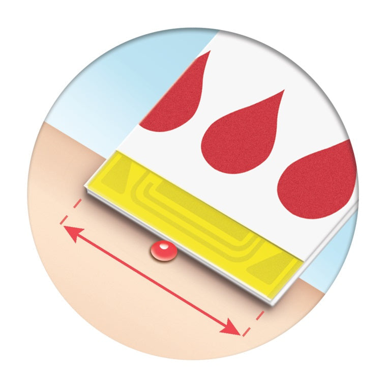 50 张 Accu-Chek Instant 试纸配有宽阔的试纸剂量区域,可轻松采集血样。