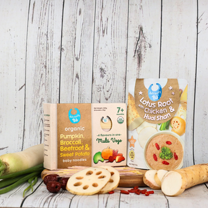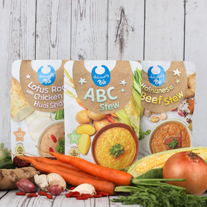 A time-honored nourishing stew created through carefully selected lotus roots blended with fresh chicken meat, sweetened with pitted honey dates and then cooked through a hearty broth of dried scallops with a subtle hint of cuttlefish fragrance. Lotus Root is a good source of vitamin C and B6, potassium and thiamine. Diced Huai Shan is added for extra nutrition and is known in Traditional Chinese medicine to improve babies' digestion and to calm nerves. The stew is easy and convenient to prepare, requiring only hot water to warm the pouch, making it travel-friendly as well! Our stews are BPA free and are made up of 4-layer food grade Aluminium, our stews go through a high temperature retort process to ensure that there are no bacteria left in the pouches that will cause contamination.