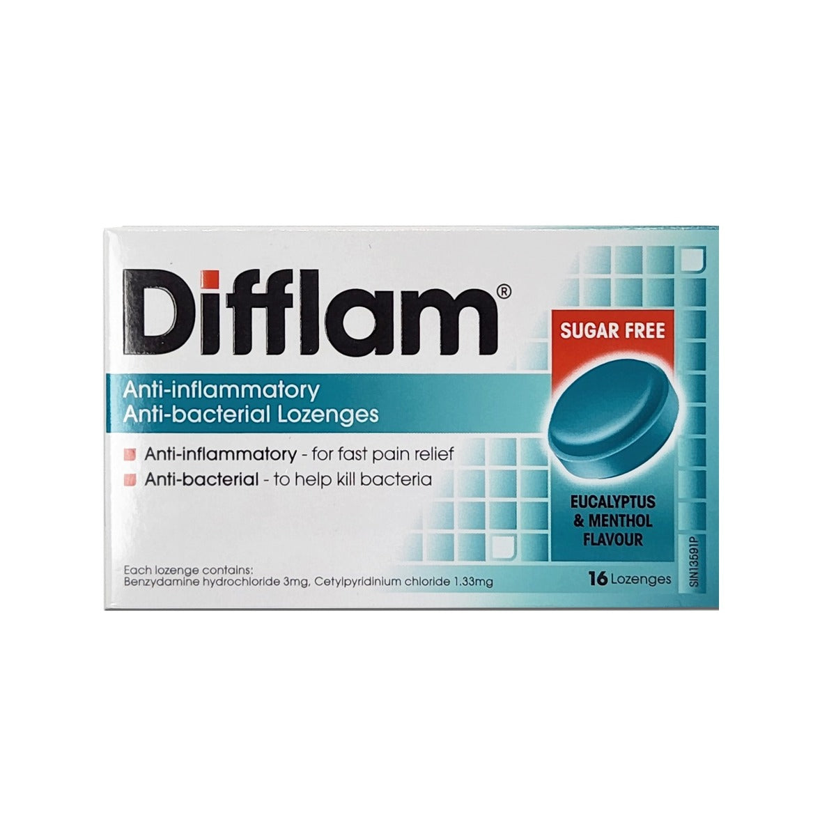 Difflam Anti Bacterial Lozenges - Eucalyptus & Menthol Flavour 16's