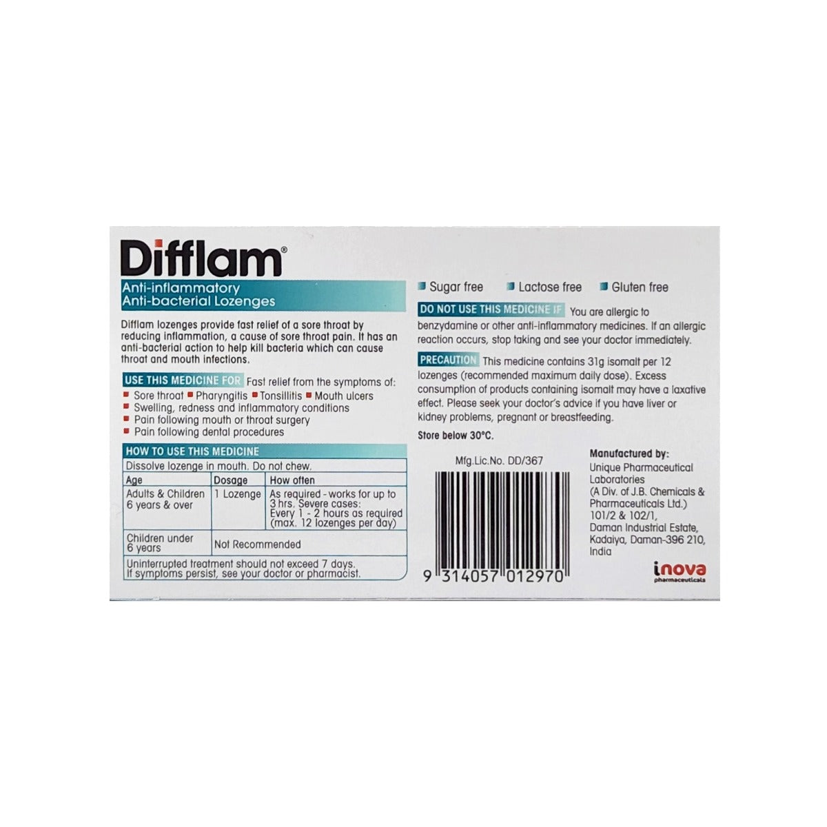 Difflam 抗菌含片将舒缓的苄达明与防腐剂结合在一起,有助于缓解疼痛并杀死引起轻微喉咙和口腔感染的细菌。