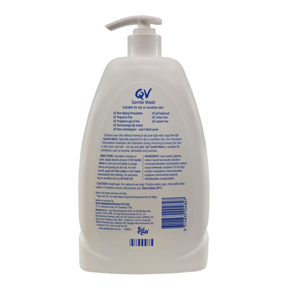 Ego QV 温和洁肤水经皮肤科医生测试,不含香料、常见刺激物、坚果或乳制品。pH 值均衡的配方,温和清洁肌肤,同时滋润敏感肌肤。