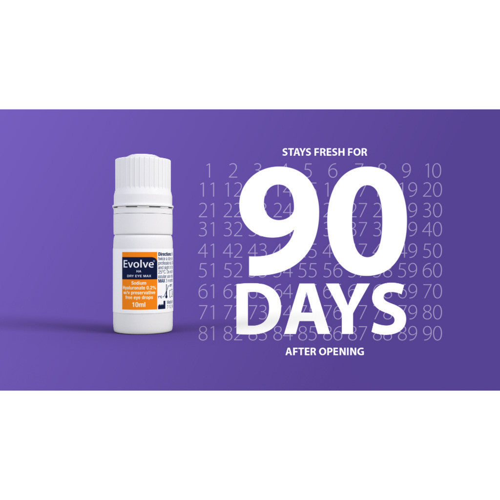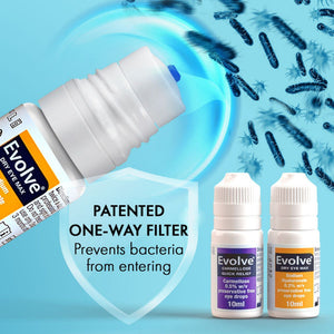 Evolve Quick Relief 是一款独特的眼药水系统,旨在将一次性无防腐剂眼药水的优势与标准眼药水瓶的便捷性完美结合。开封后,眼药水可保持新鲜无菌长达 90 天,无需添加防腐剂,这得益于其专利瓶身,可有效防止细菌污染内容物。Evolve Quick Relief 堪称干眼症管理领域的先驱,它不仅不含任何防腐剂,而且保质期比其他眼药水更长。