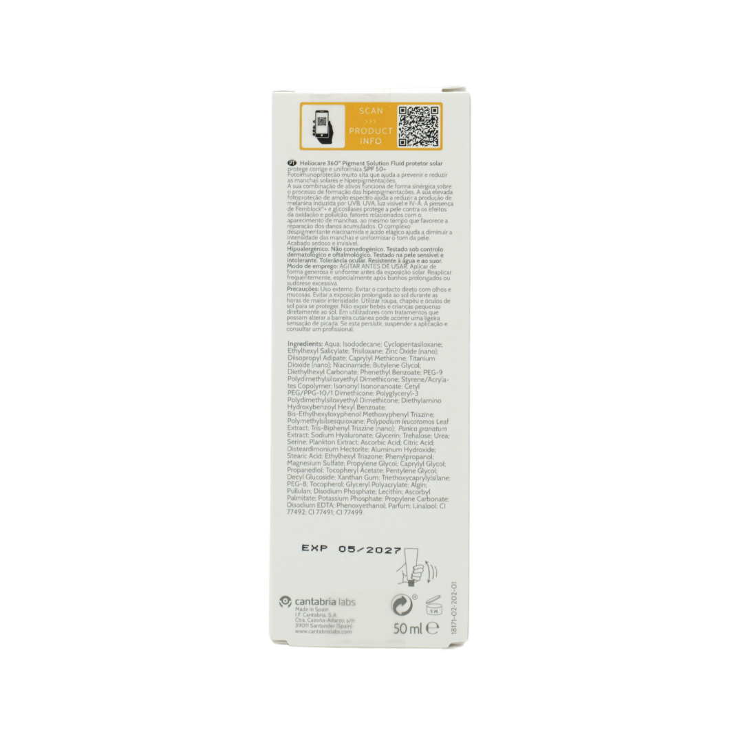 360º 配方将 Heliocare 独有的 Fernblock®+ 技术与其他活性成分相结合,确保全光谱防晒,抵御蓝光、红外线辐射 A、UVB 和 UVA,以及强效抗氧化和修复活性,防止阳光损伤。