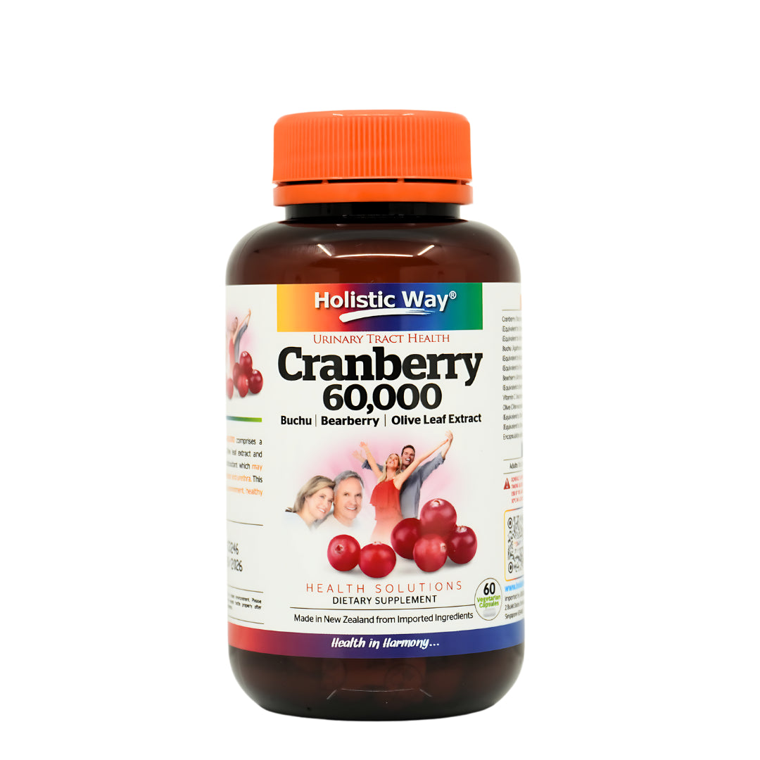 Holistic Way Cranberry 60,000 专为促进泌尿系统健康而配制。蔓越莓富含原花青素,这种抗氧化剂有助于中和自由基,促进泌尿道健康。