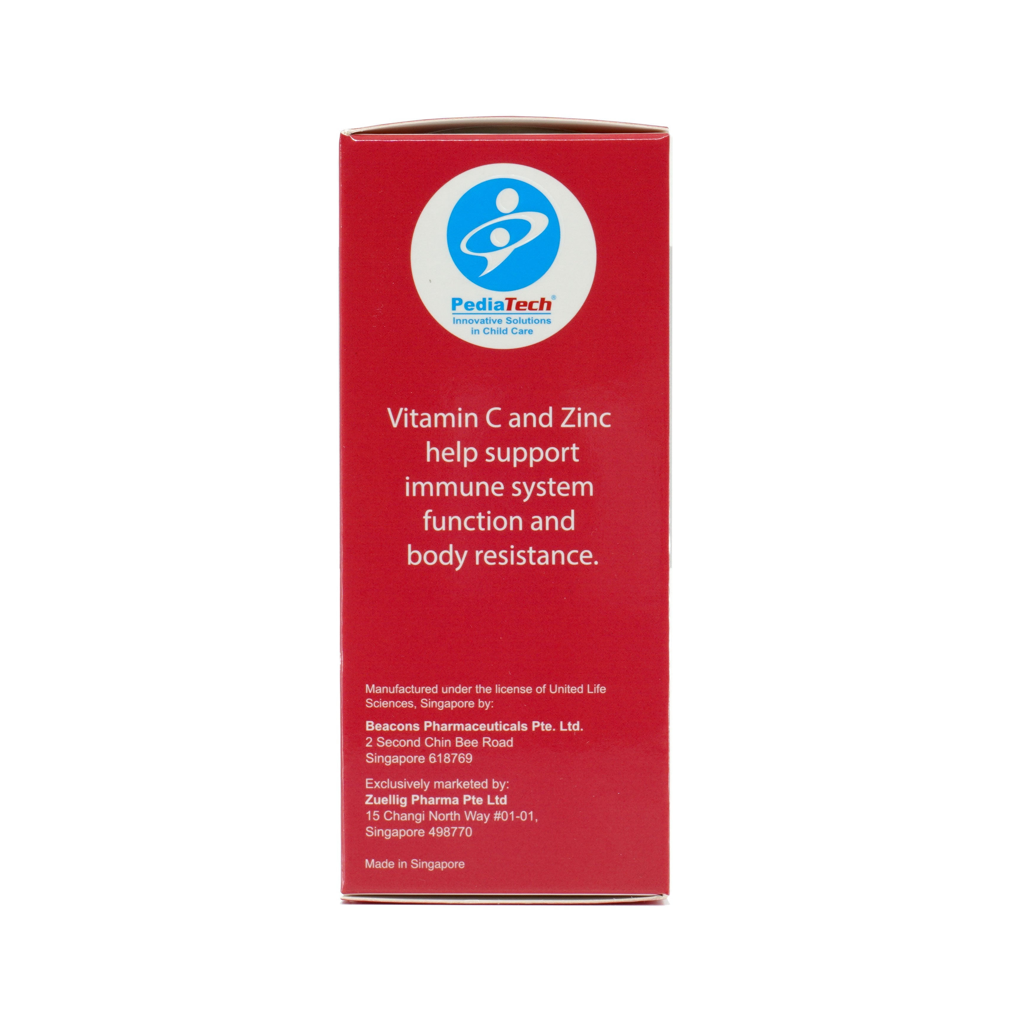Immunped -专利锌+维生素C糖浆是一款PediaTech®专利糖浆,融合了ZincPlus®和TasteRite®高效技术,将锌和维生素C成分独特地结合在一起。这款Immunped糖浆口感苹果味,富含锌,有助于杀灭损害儿童免疫力的细菌和病毒,从而增强儿童对普通感冒和肺炎的抵抗力。这款糖浆专为儿童配制,口感美味,没有锌带来的涩味。