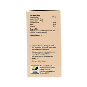 - 抗坏血酸钙 500 毫克(提供维生素 C 413 毫克和钙 46 毫克)