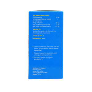 含有优质大豆衍生的磷脂酰丝氨酸和必需的 Omega-3 脂肪酸的混合物,它们是脑膜的重要组成部分,有助于支持健康的大脑功能,如记忆力、敏锐度、注意力和情绪健康。