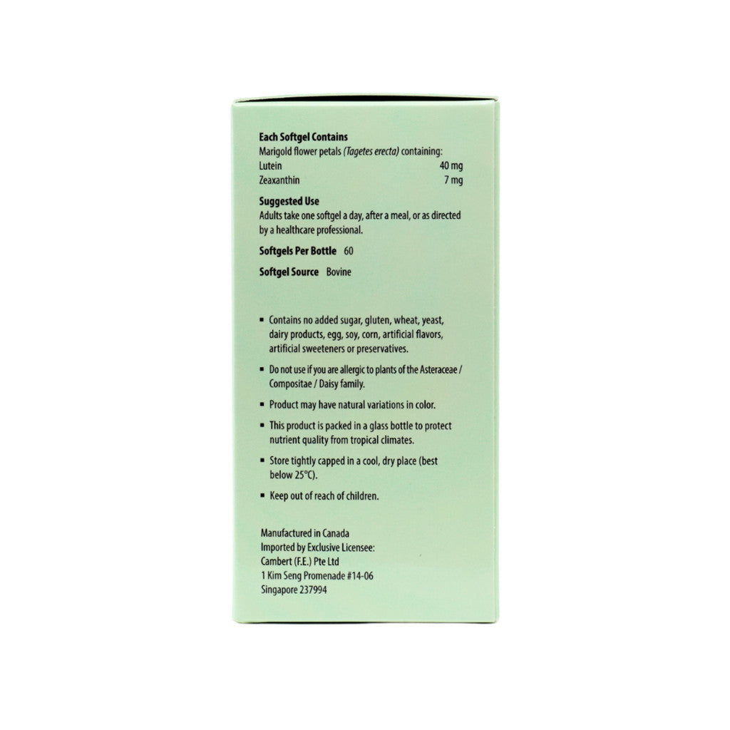 Kordel's 高强度叶黄素 40 毫克采用源自万寿菊花瓣的天然纯净高效叶黄素和玉米黄质。本产品未经辐照,且不含转基因成分。