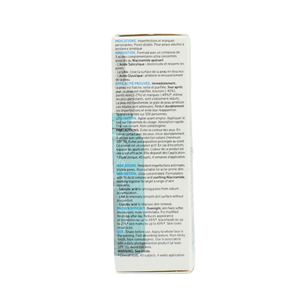 EFFACLAR 精华液蕴含去角质酸,并结合舒缓的烟酰胺,有效去除黑头、粉刺、痘印和毛孔粗大。无需冲洗,令肌肤更加细腻纯净。这款精华液质地轻盈,易于吸收,方便日常使用。使用后不油腻,清爽不黏腻。