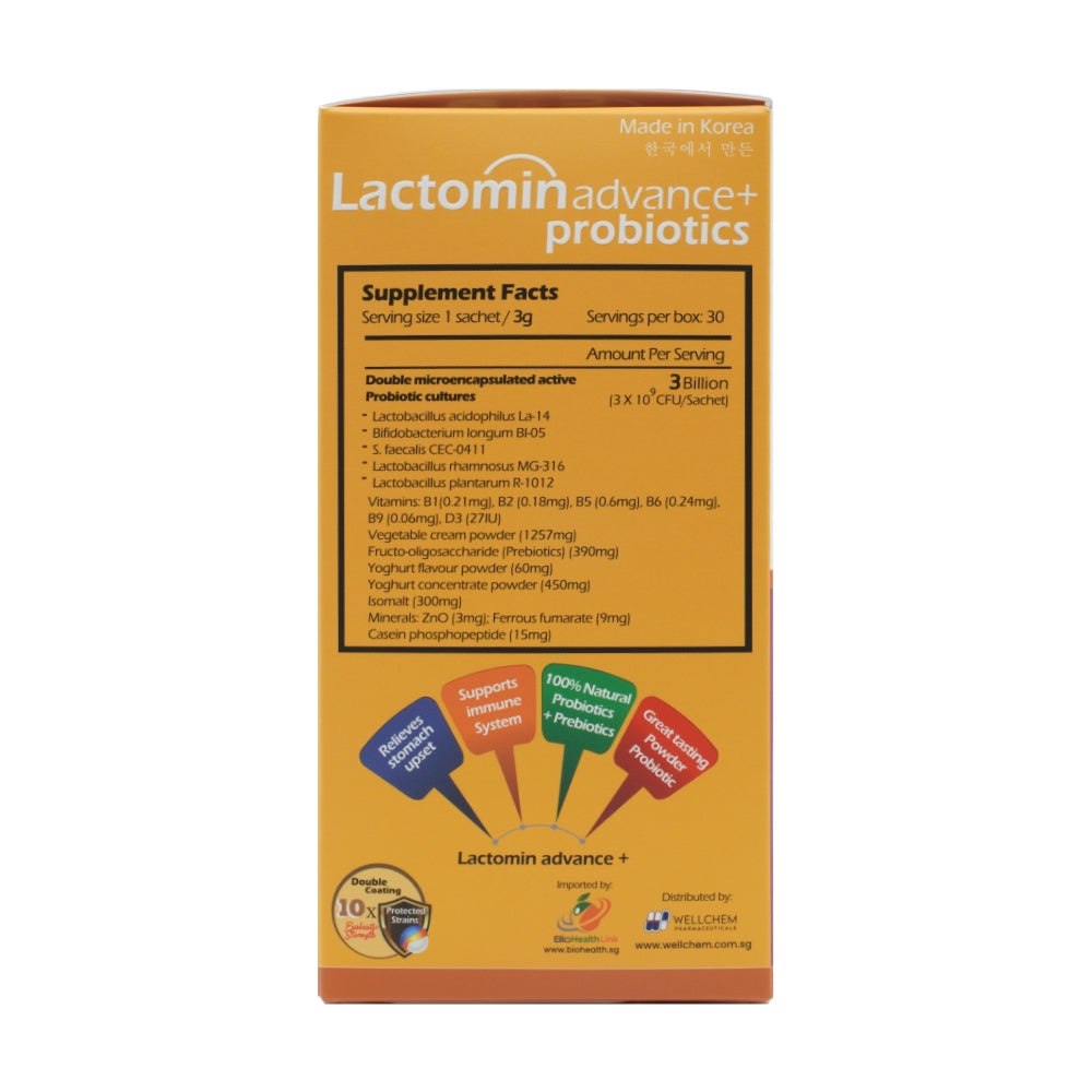 Lactomin Advance + Probiotics 30's 是韩国开发的最强大的整体益生菌产品之一,在新加坡获得了全国赞誉。