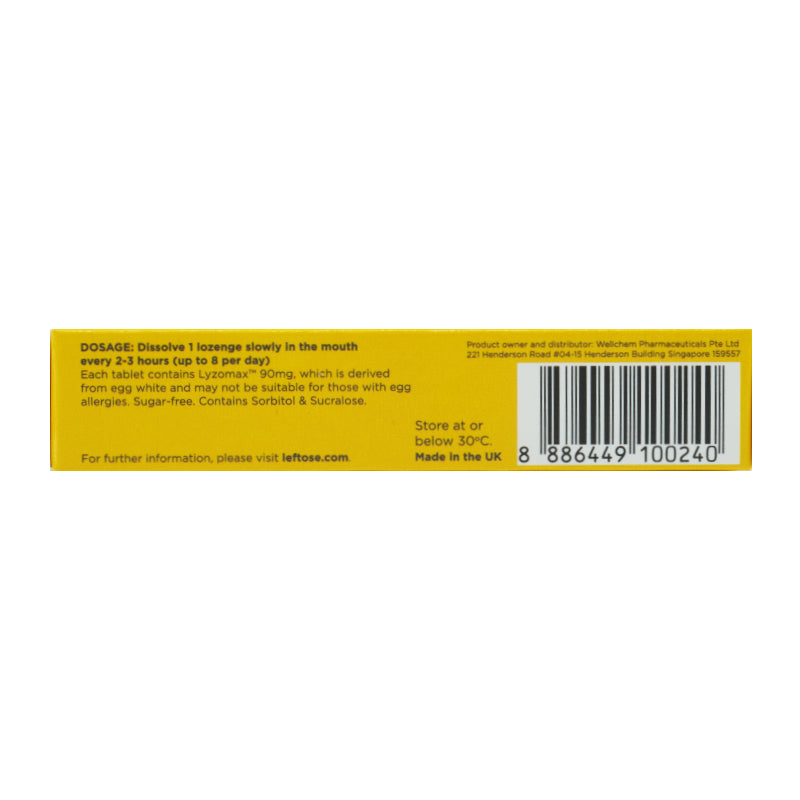 Leftose Lozenges Honey Lemon Flavour 16's (Lysozyme Hydrochloride)