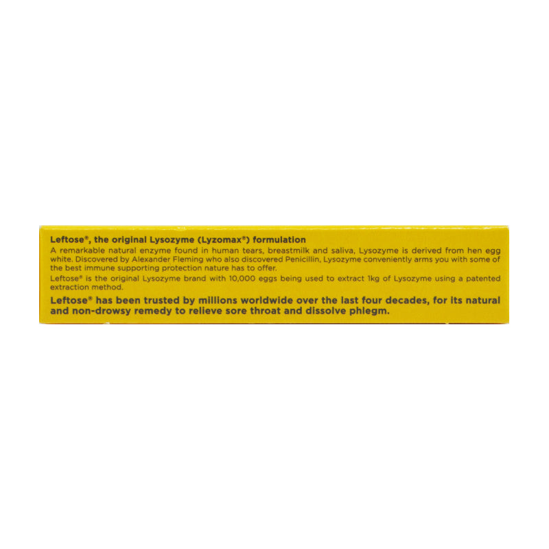 Leftose 是全球数百万人信赖的品牌,拥有超过四十年的专业经验和卓越功效。它采用天然配方,不引起困倦,有助于舒缓咽喉。