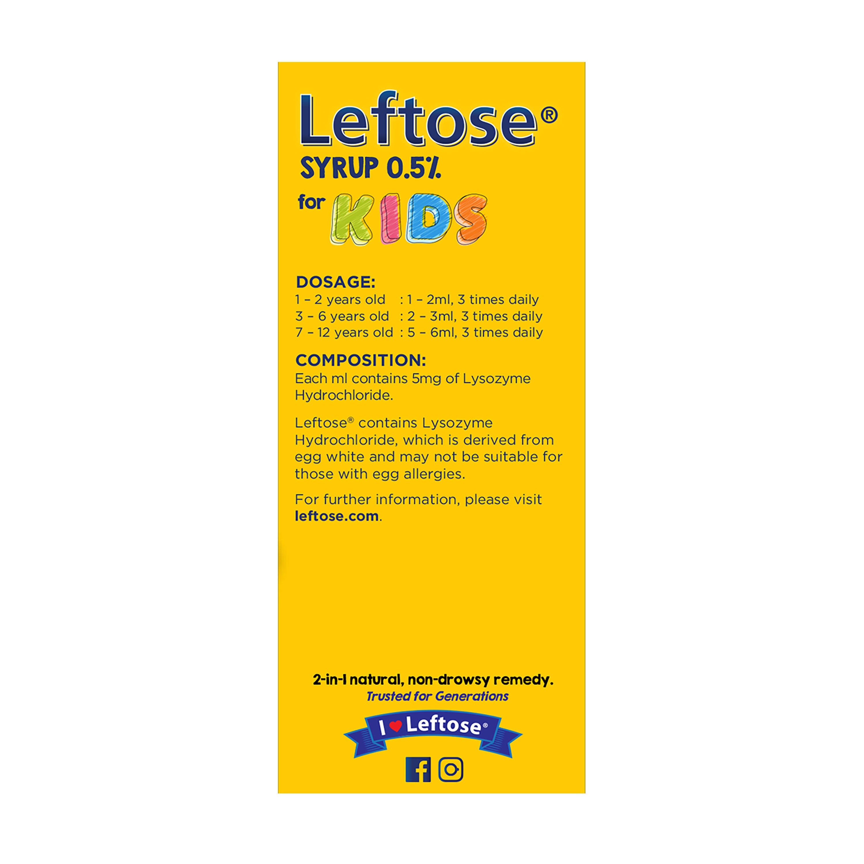 Leftose Syrup For Kids 100ml (Lysozyme Hydrochloride)