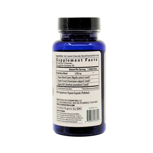 每份(2粒胶囊)含:专有配方1200毫克,由黑孜然(籽)、茴香(籽)、莳萝(籽)制成。素食胶囊。