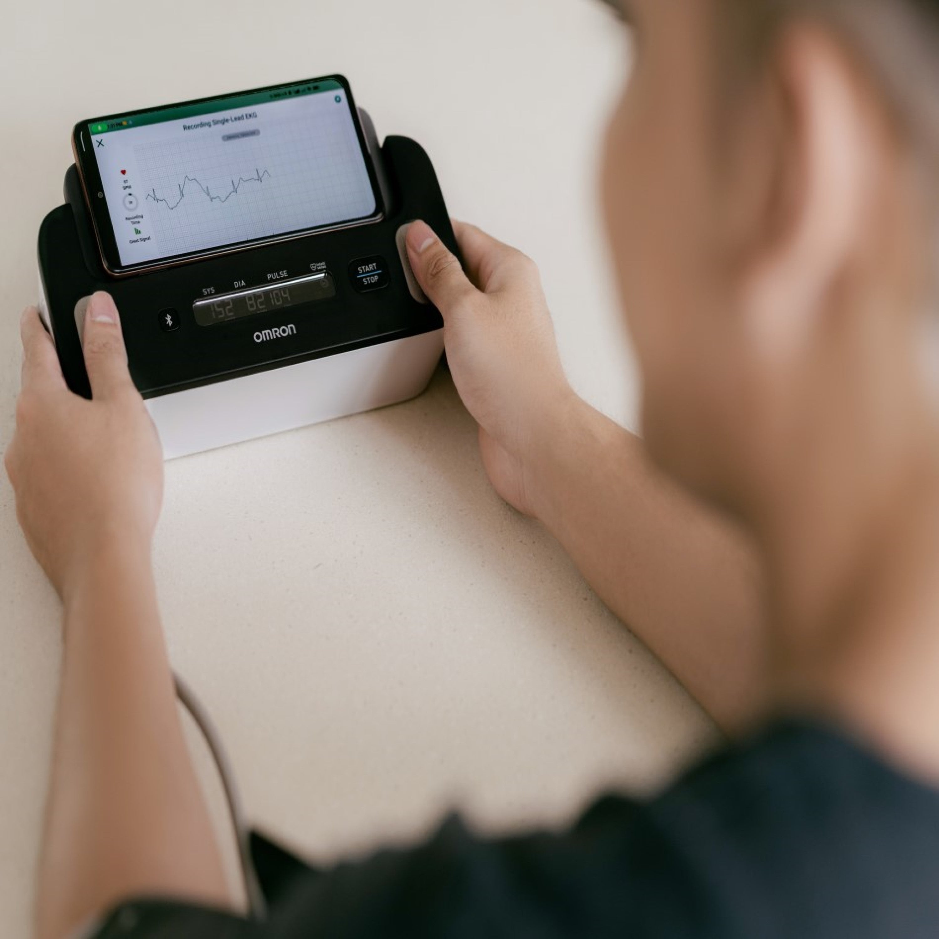 这是一款先进的家用监测设备,结合了血压测量和单导联心电图记录功能。它可以筛查一系列心脏疾病,包括:心律不齐,例如心房颤动、心动过速、心动过缓以及高血压。