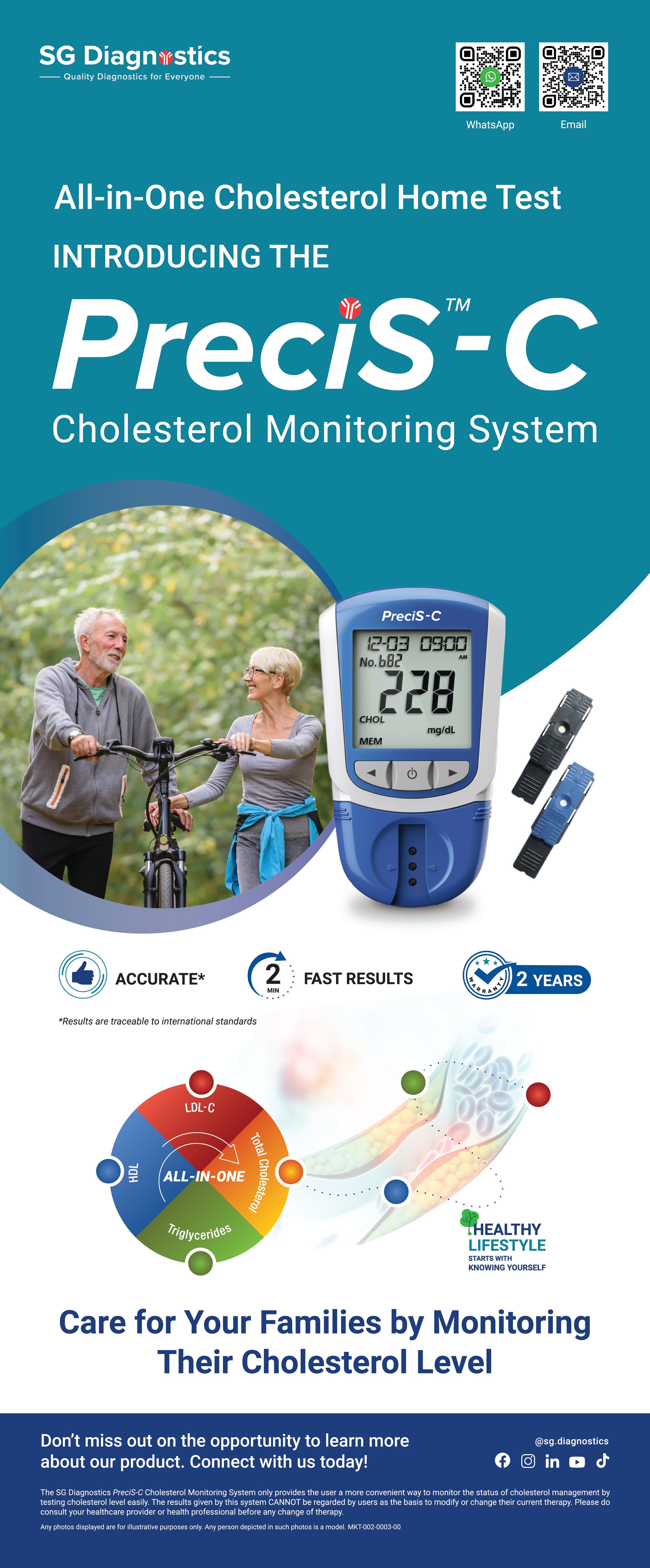 胆固醇家用检测试剂盒 - 新加坡唯一一款可全面检测血脂的家用设备。内含5条试纸。