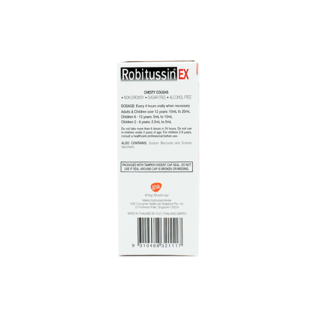 Robitussin EX 糖浆可以缓解家人因感冒引起的胸闷和咳嗽症状。