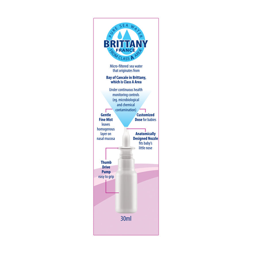 Serenaz 天然海水鼻喷雾剂(儿科)含有 100% 来自法国布列塔尼康卡勒湾 A 级区域的天然海水。