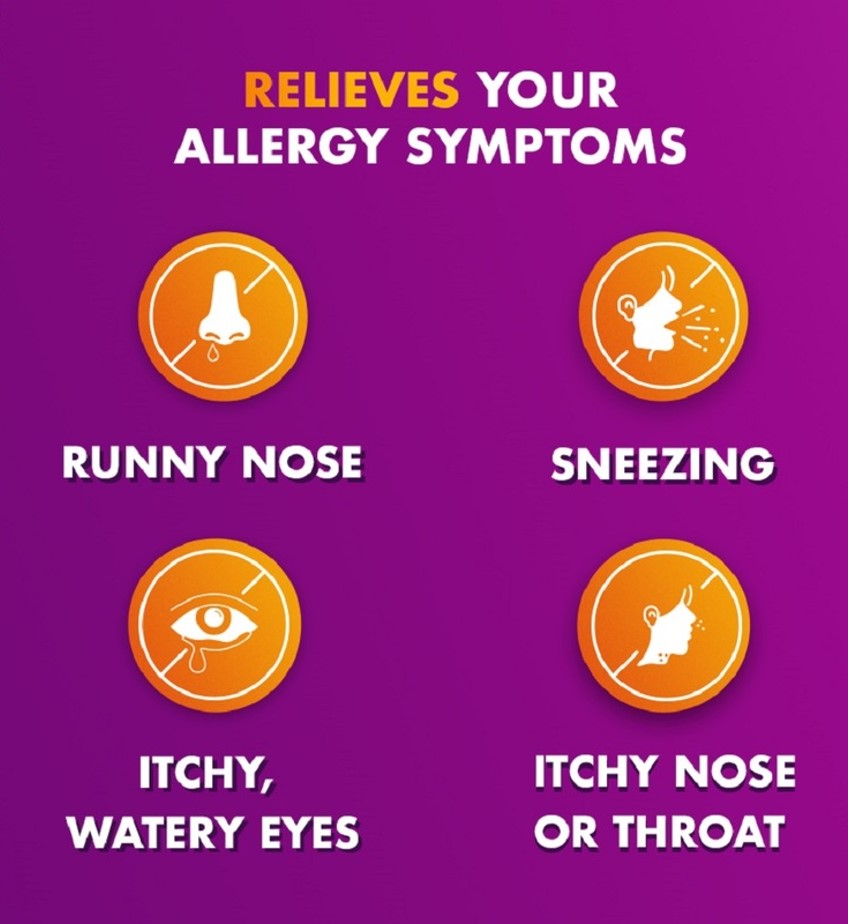 - 不瞌睡——数小时缓解过敏症状,不会感到困倦,让您可以完美地度过一天。