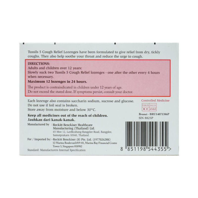 Tussils 5 止咳润喉糖专为缓解干咳和痒咳而设计。它还能舒缓喉咙,减少咳嗽的冲动。