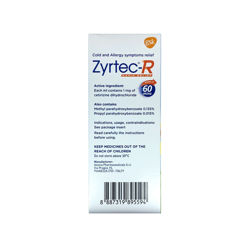 Zyrtec-R 口服溶液可快速、24 小时缓解花粉热和全年过敏(灰尘、宠物和霉菌过敏)的症状,例如打喷嚏、流鼻涕和眼睛发红、发痒、流泪。